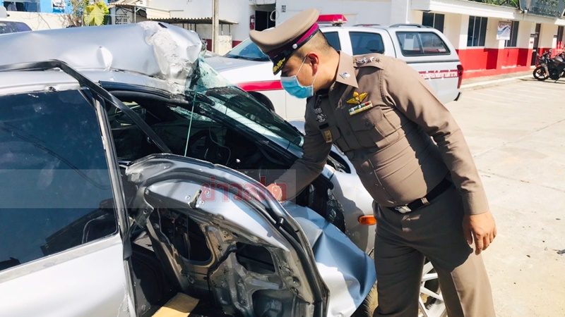 จากการตรวจสอบสภาพรถพบว่า เสียหายด้านประตูคนขับ ยุบจนพับเข้าหากัน หลังคาพังเสียหาย กระจกหน้าและกระจกด้านคนขับแตก ส่วนฝากระโปรงรถยุบงอ ส่วนอื่นๆไม่ได้รับความเสียหาย ภายในเสียหายเพียงเล็กน้อย พนักงานสอบสวนเจ้าของคดีได้บันทึกข้อมูลต่างๆร่วมกับเจ้าหน้าที่ตำรวจพิสูจน์หลักฐานไว้เป็นหลักฐานต่างๆ เพื่อประมวลเหตุการณ์ของอุบัติเหตุต่อไป