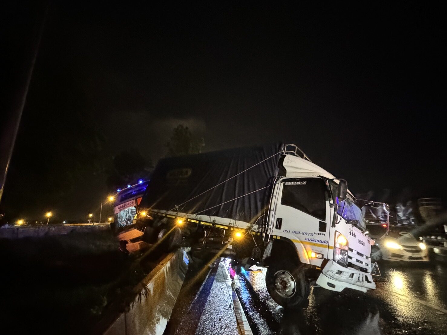 เมื่อเวลา 04.00 น. วันที่ 17 มิ.ย.2567 ผู้สื่อข่าวรายงานว่า ในพื้นที่ จ.พระนครศรีอยุธยา มีฝนตกหนักตลอดทั้งคืน ถนนลื่นส่งผลให้เกิดอุบัติเหตุ ซ้ำซ้อนรถชนคัน 3 คัน เป็นรถยนต์บรรทุก 6 ล้อ สีขาว ทะเบียนยโสธร ชนแบริเออร์ เกาะกลางถนน ท้ายรถบัสโดยสาร กรุงเทพ-เชียงใหม่ ทะเบียกรุงเทพมหานคร ตกลงไปร่องกลางถนน