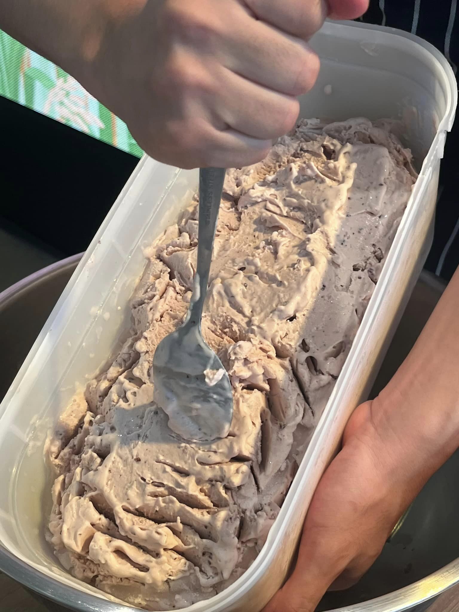เชฟจารึก ศรีอรุณ กล่าวว่า วันนี้เราจะนำข้าว GI พันธุ์ข้าวสังข์หยด และข้าวลืมผัว มาทำไอศกรีมเป็นข้าวขาวและข้าวไรซ์เบอร์รี่ เพื่อให้ออกมาสีสวย ส่วนผสมหลักมี ข้าว นมจืด น้ำตาลทรายขาว ครีม เริ่มจากการนำนมมาต้ม สัดส่วนนม 2 ครีม 1 ชอบมันมากก็ใส่ครีมมาก น้ำตาลเติมความหวานมากน้อยตามชอบ