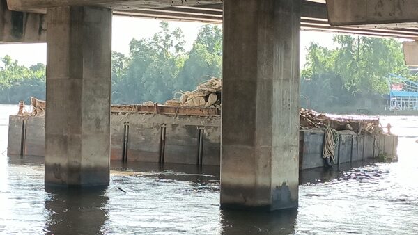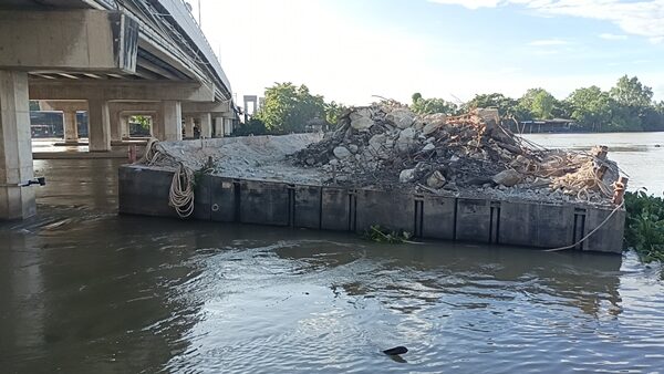 ชาวบ้านระทึก โป๊ะเรือ ขนาดใหญ่หลุดกระแทกสะพานข้ามแม่น้ำบางปะกง