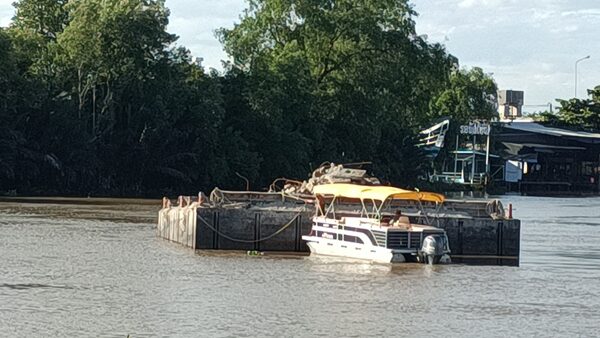 ชาวบ้านระทึก โป๊ะเรือ ขนาดใหญ่หลุดกระแทก สะพานข้ามแม่น้ำบางปะกง ระดมช่วยกันวุ่น