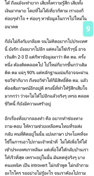 นี้ คือคนมีใบเชิญ มีคนเกาหลีการันดี) ที่เหลือเอกสารแน่นแค่ไหนก็ดูบ้างไม่ดูบ้าง แล้วแต่เจ้าหน้าที่ จนท. ในห้องนี้ พฤติกรรมแย่ทุกคนทรีทเราเหมือนคนคุก เหมือนอาชญากรไปแล้ว พูดห้วนๆ น้ำเสียง+หน้าตาแบบคนโกรธ พูดไทยง่ายๆ ได้กันเยอะจริง เช่น รอ ไป เร็วๆ คนไทย เป็นต้น