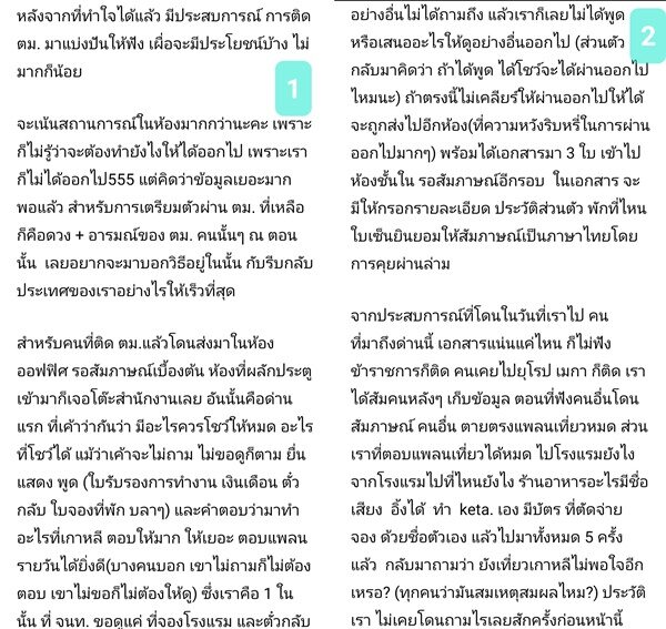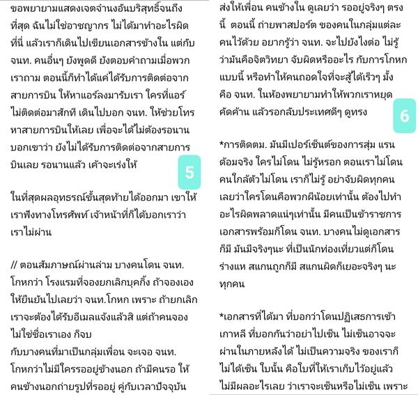 จากประสบการณ์ที่โดนในวันที่เราไป คนที่มาถึงด่านนี้ เอกสารแน่นแค่ไหน ก็ไม่ฟังข้าราชการก็ติด คนเคยไปยุโรป เมกา ก็ติด เราได้สัมคนหลัง ๆ เก็บข้อมูล ตอนที่ฟังคนอื่นโดนสัมภาษณ์ คนอื่น ตายตรงแพลนเที่ยวหมด