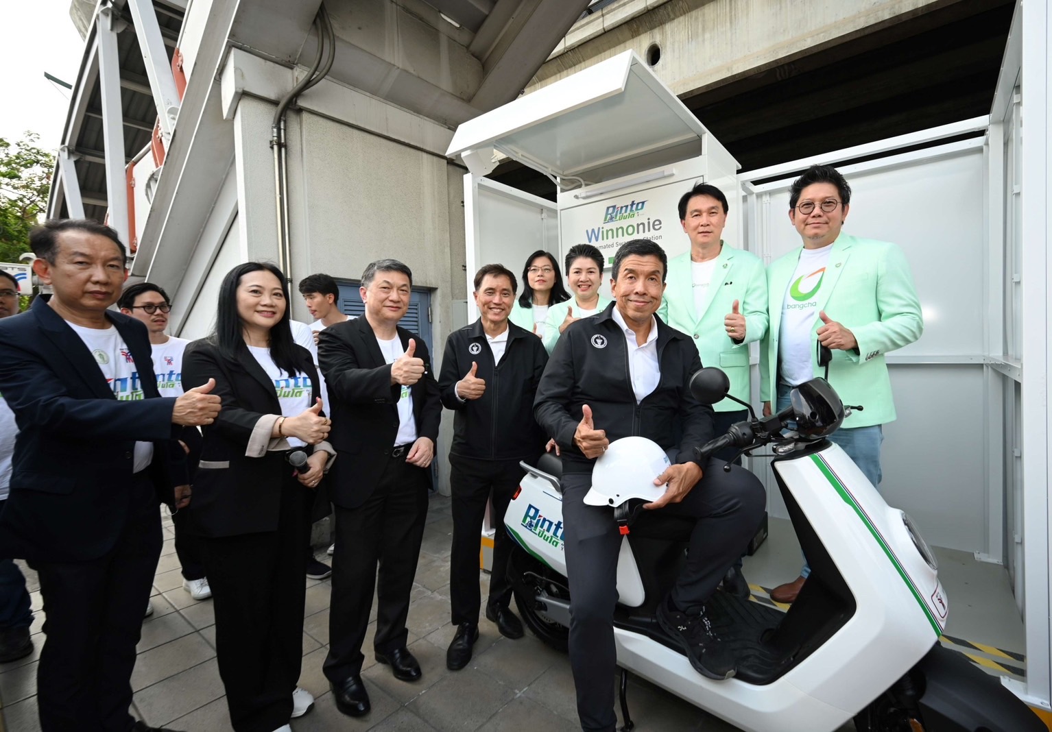 บางจาก-บีทีเอส ส่งจักรยานยนต์ไฟฟ้า Pinto (ปิ่นโต) สร้างบริการขนส่งด้วยพลังงานสะอาดให้บริการผู้โดยสารบีทีเอสเดินทางด้วยพลังงานไฟฟ้าตลอดเส้นทางแบบ First Mile to Last Mile