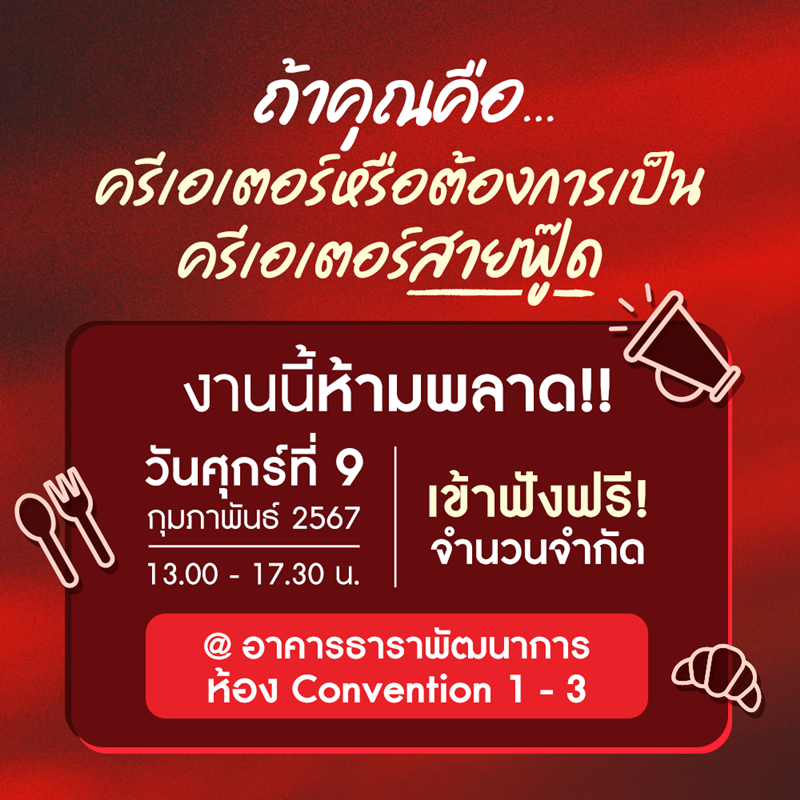 ยืนหนึ่งเรื่องความกู๊ดที่เหล่าครีเอเตอร์สายฟู๊ดต้องห้ามพลาด!! แม็คโคร ผู้นำธุรกิจค้าส่ง ภายใต้บริษัท ซีพี แอ็กซ์ตร้า จำกัด (มหาชน) จัดงานใหญ่ครั้งแรกของปี “Makro Creator Meetup ตอนสายฟู๊ดมันกู๊ดมาก” งานดีๆ ที่ “แม็คโคร” จัดให้แบบฟรี ๆ ไม่มีค่าใช้จ่าย!! ชวนครีเอเตอร์สายอาหารทั่วฟ้าเมืองไทยร่วมอีเวนต์สุดปังที่ไม่ใช่แค่การนั่งฟังเหมือนสัมมนาทั่วไป แต่มั่นใจได้ว่ากลับบ้านไป ต้องได้ใช้จริง ภายในงานพบกับ Speaker ตัวแม่ตัวมัมที่จะมาอัปเดต 4 สกิล ที่ครีเอเตอร์สายฟู๊ดต้องรู้ จัดเต็ม 4 ช่วงจุกๆ กันไปเลย