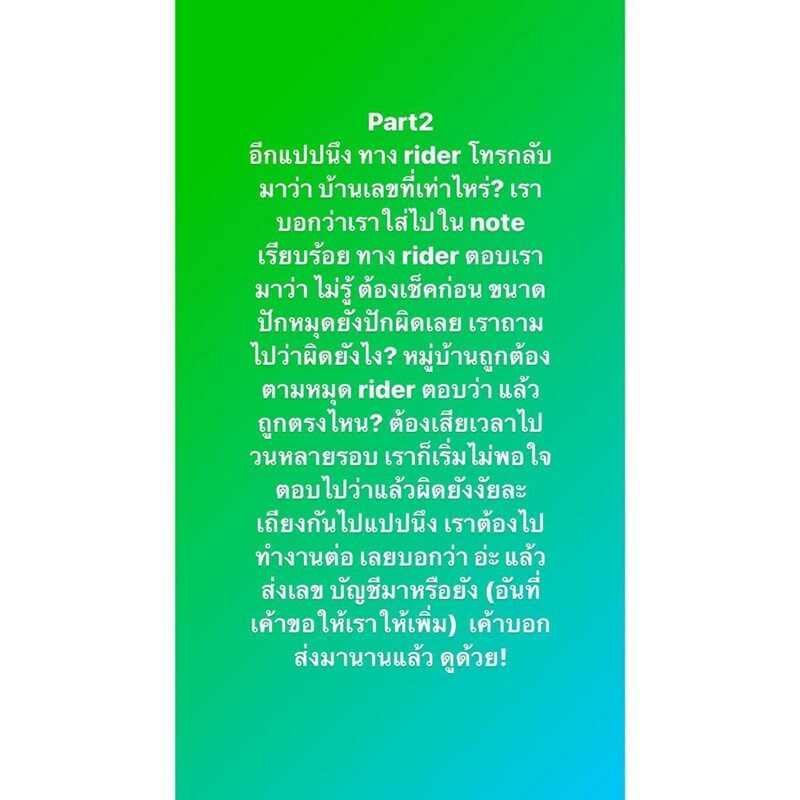 ซึ่งเราผู้เรียก ไม่ได้รู้ทุกจุดที่ต้องไปส่งแน่นอนค่ะ ว่าสภาพทางนั้นเป็นยังไง พยายามอธิบาย ก็ไม่อยากจะฟัง คือ งง มาก แล้วจะถามทำไม ต้องการแค่ระบายงี่หรอ 5555 ทำใจมากค่ะ