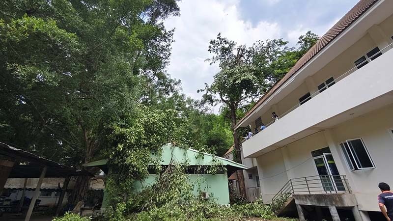 พายุฤดูร้อนถล่ม ปักธงชัย บ้านพังยับกว่า 20 หลัง หลังคาปลิวว่อน ด้านตึกผู้ป่วยเรื้อรัง รพ.ครบุรี โดนด้วย กิ่งไม้ใหญ่หักทับหลังคาทะลุ เคราะห์ดีเป็นวันหยุด