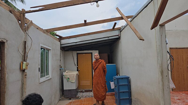 จากการตรวจสอบบ้านของนางจันทร์ พบว่าหลังคาบ้านถูกแรงลมพัดเปิดออกทั้งหมด ปลิวไปกองอยู่บริเวณด้านหลังบ้าน สร้างความเสียหายอย่างหนัก เบื้องต้นเจ้าหน้าที่จากหน่วยงานที่เกี่ยวข้องได้ลงพื้นที่สำรวจความเสียหายและบันทึกข้อมูลไว้แล้ว เพื่อเตรียมให้ความช่วยเหลือตามระเบียบ