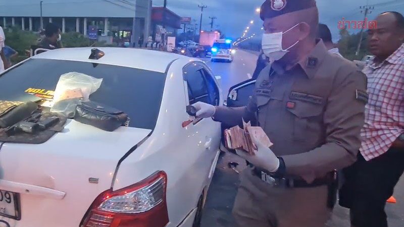 เก๋งพังยับดับ2 พบในรถมีปืน เงินสดปึกใหญ่