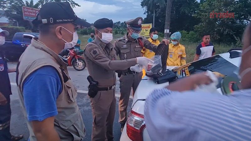 ตรวจสอบที่ช่องเก็บของพบมีเงินสดเป็นธนบัตรปึกใหญ่ คาดว่ามีจำนวนนับแสนบาท และยังพบอาวุธปืนขนาด 9 มม. 1 กระบอกพร้อมแม็กกาซีน ห่างออกไปประมาณ 40 เมตร พบรถ6ล้อบรรทุกห้องเย็น ทะเบียน 82-4767 นครศรีธรรมราช จอดอยู่ในสภาพตอนท้ายเสียหาย พบคนขับรอให้การกับตำรวจในที่เกิดเหตุ
