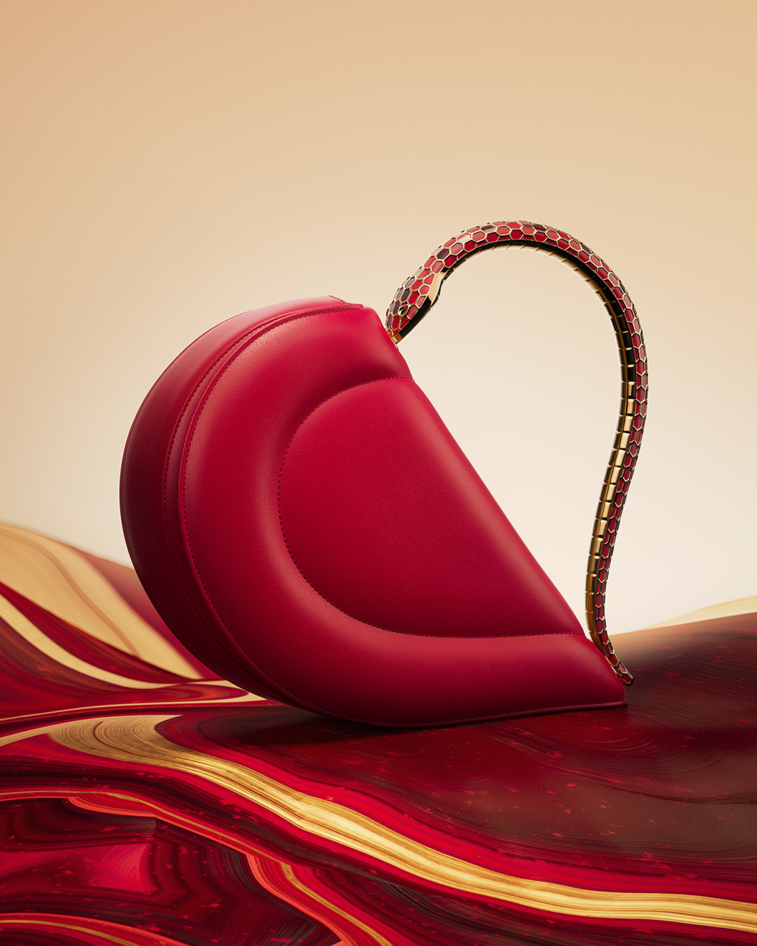 ถัดมาที่BVLGARI นำเสนอกระเป๋า Serpenti Cuore 1968 กระเป๋าใบนี้โดดเด่นด้วยรูปทรงที่เป็นเอกลักษณ์ซึ่งทำให้นึกถึงครึ่งหนึ่งของหัวใจ สัญลักษณ์แห่งความรักสูงสุด ครึ่งหนึ่งเกิดจากตัวกระเป๋าอีกครึ่งหนึ่งเกิดจากที่จับชุบทองรูปงูทรงโค้ง อันชวนให้นึกถึงนาฬิกาอัญมณี BVLGARI Serpenti Harlequin ที่โด่งดังในปี 1968 กระเป๋าใบนี้ทำจากหนังลูกวัวชั้นเลิศและนำเสนอในหลากเฉดสีที่ได้รับแรงบันดาลใจจากอัญมณี โดยกระเป๋ารุ่นพิเศษนี้วางจำหน่ายเฉพาะในบูติก BVLGARI ที่ได้รับเลือกทั่วโลกเท่านั้น สัมผัสสัญลักษณ์แห่งความรักสูงสุดได้ที่ บูติก BVLGARI ชั้น M และ ชั้น 1 สยามพารากอน