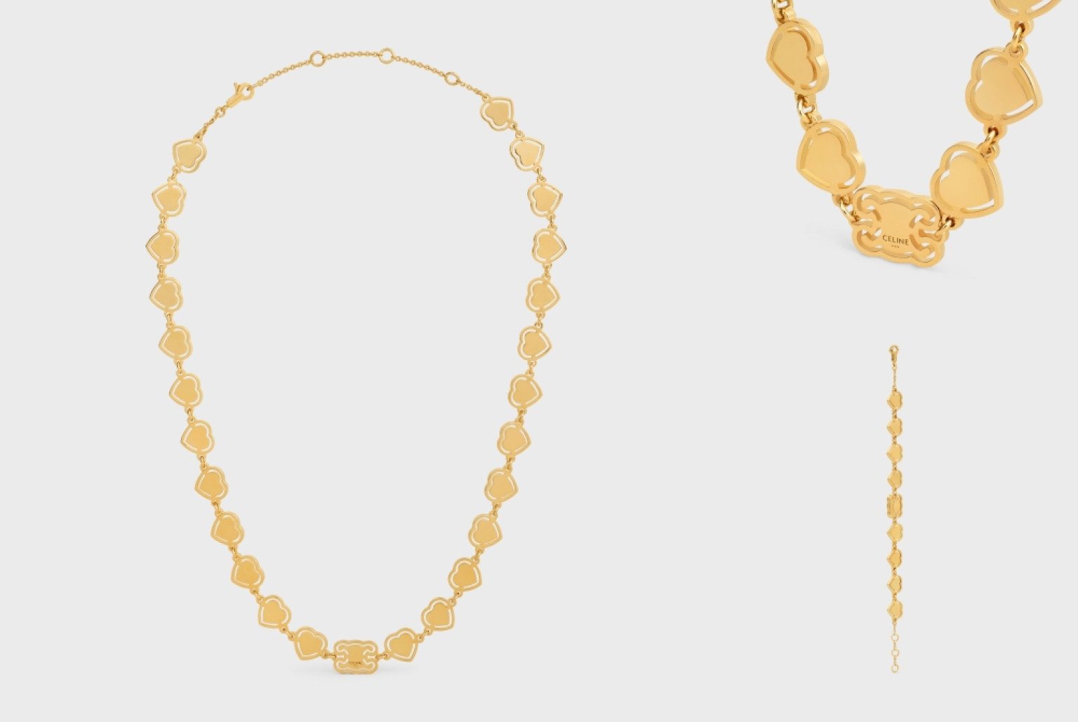 ข้ามมาที่ฝั่งของจิวเวลรี่ CELINE ต้อนรับวาเลนไทน์ด้วยไอเทมจิวเวลรี่จากคอลเลคชั่น SPRING 2025 ไอเทมที่ออกแบบมาต้อนรับช่วงเทศกาลวันวาเลนไทน์ กับสร้อยคอและสร้อยข้อมือทองเหลืองตกแต่งสีทอง มอบความน่ารักสดใสให้กับไอเทมชิ้นนี้ด้วยจี้รูปหัวใจซึ่งเรียงรายต่อกันตลอดทั้งเส้น เชื่อมต่อกันด้วยห่วงสีทอง แสดงออกถึงความรักที่ถักทอเป็นเส้นเช่นเดียวกับสร้อยคอและสร้อยข้อมือนี้ นอกจากจี้รูปหัวใจ ยังมีความคลาสสิกที่ปรากฏผ่านจี้หลักตรงกลาง ด้วยรูปทรียงฟ์อันเป็นเอกลักษณ์ของ CELINE พร้อมสลักชื่อ CELINE PARIS เพื่อมอบเป็นของขวัญให้กับคนรักสำหรับวาเลนไทน์นี้ ร่วมสร้างโมเม้นต์และความทรงจำอันล้ำค่าที่ CELINE ชั้น M สยามพารากอน