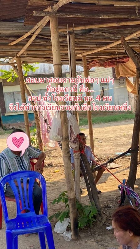 สอบถามกับพ่อๆ แม่ๆ ที่อยู่แถวนี้คือ… สรุปทั้งโรงเรียนมี นร.4 คน จึงได้ทำการเรียนรวมกับอีกโรงเรียนหนึ่ง ตกใจกับจำนวนนักเรียนไปอีกกก แต่สุดท้ายไม่ว่านักเรียนจะกี่คน ก็จะทำหน้าที่ตัวเองให้ดีที่สุด และภูมิใจกับอาชีพของตัวเองมาก