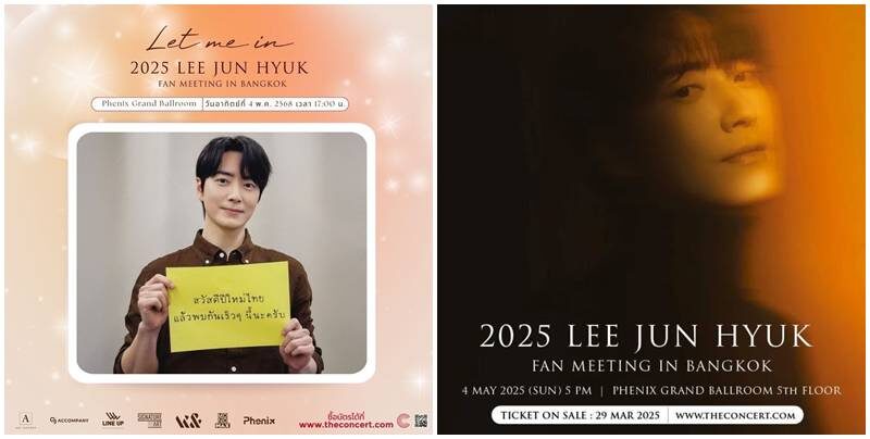 อดใจรอแทบไม่ไหว เตรียมนับถอยหลังวันจะได้เจอตัวจริง พระเอกเกาหลีสุดหล่ออีจุนฮยอก (Lee Jun Hyuk) เจ้าของบทบาท “คุณเลขายูอึนโฮ” จากซีรีส์สุดฮอต Love Scout ที่จะมางานแฟนมีตติ้งครั้งแรกในประเทศไทย “2025 LEE JUN HYUK FAN MEETING IN BANGKOK [LET ME IN]” ในวันอาทิตย์ที่ 4 พฤษภาคม 2568 เวลา 17.00 น. ณ PHENIX GRAND BALLROOM ชั้น 5