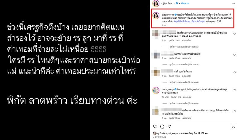 ช่วงเศรษฐกิจตึง ดีเจต้นหอม ประกาศหารร.ค่าเทอมไม่เหนื่อย แผนสำรองเล็งย้ายลูก ลั่นยุคนี้ไม่มีเงินอย่ามีลูก เชื่อเถอะ ชาวเน็ตแห่คอมเมนต์ที่ไหนบ้างดี