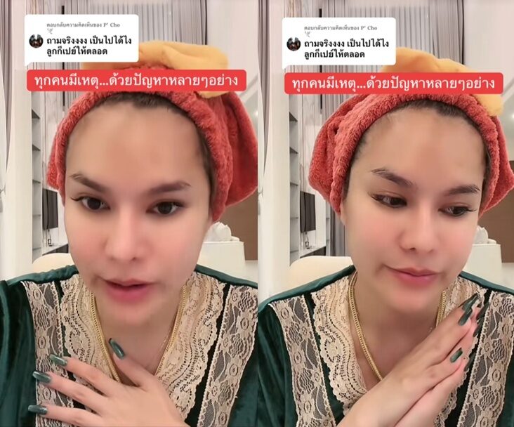 “ที่โพสต์ไปมีเหตุผล หนูเป็นลูก สำหรับหนูแม่คือแม่ แต่วันนี้หนูขอแยกทางกับแกอยู่ เพราะด้วยปัญหาหลายๆอย่าง ที่ต้องตามแก้ไข หลักๆเลยคือเรื่องการพนัน แม่หนูชอบเล่นไพ่เข้าบ่อน แยกทางกับแม่ แต่ผัวยังอยู่”