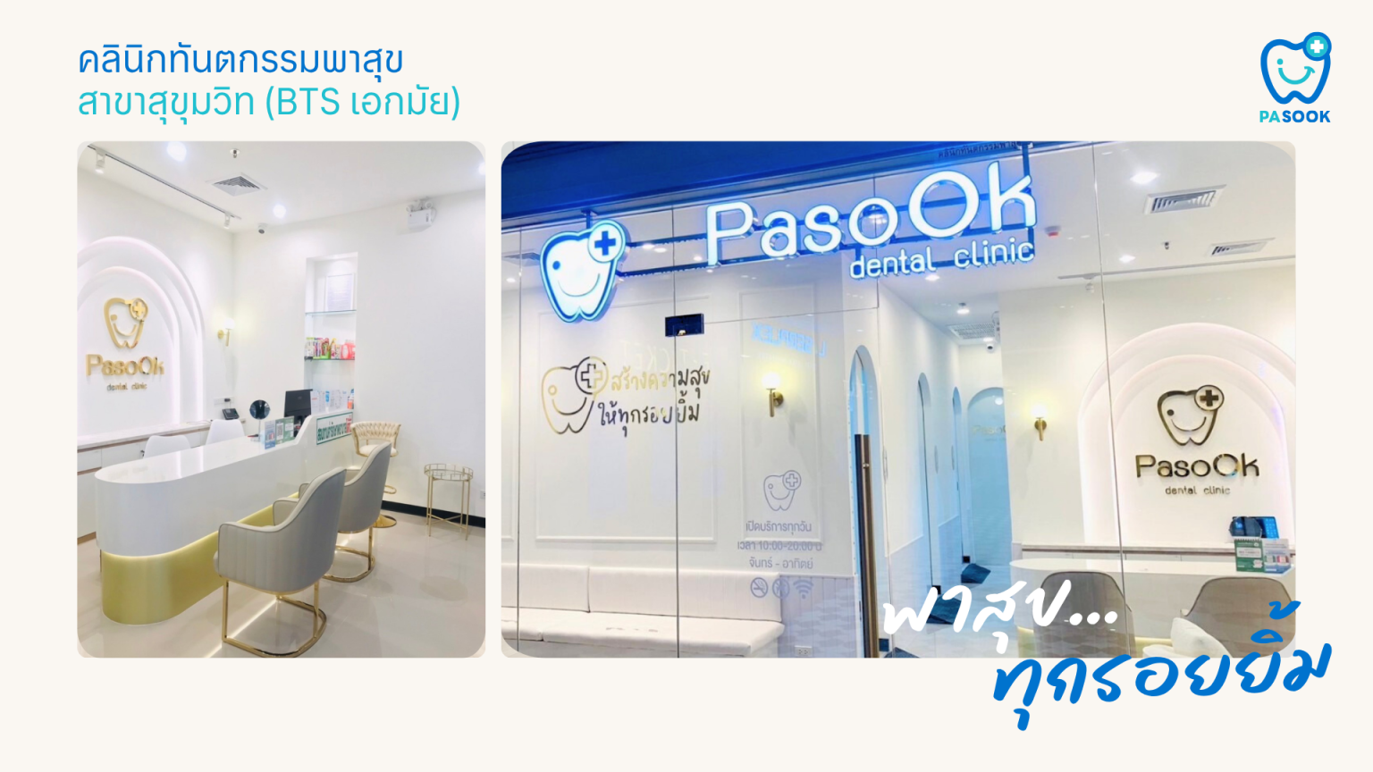 คลินิกทันตกรรมพาสุข (Pasook Dental Clinic) ขยายสาขาใหม่สู่ใจกลางย่านธุรกิจ-ไลฟ์สไตล์อย่าง “เมเจอร์ เอกมัย” บนถนนสุขุมวิท ติด BTS เอกมัย (ทางออก 1) เพื่อรองรับกลุ่มคนรุ่นใหม่ที่ต้องการความสะดวก รวดเร็ว ใส่ใจสุขภาพช่องปากและเพิ่มความมั่นใจในรอยยิ้ม