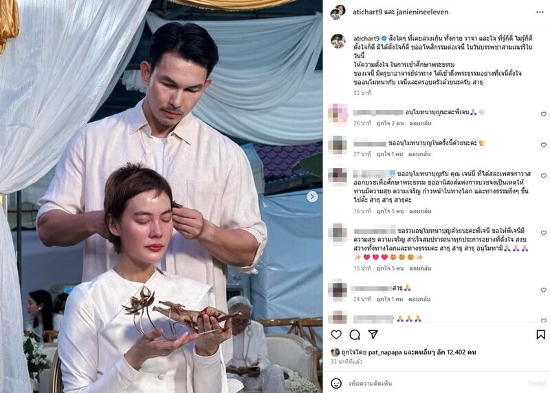 อ่านข่าวต้นฉบับได้ที่ : อั้ม อธิชาติ พร้อมคุณแม่ ร่วมพิธี เจนี่ บวชสามเณรี ขอให้ได้เข้าถึงพระธรรมอย่างที่ตั้งใจ