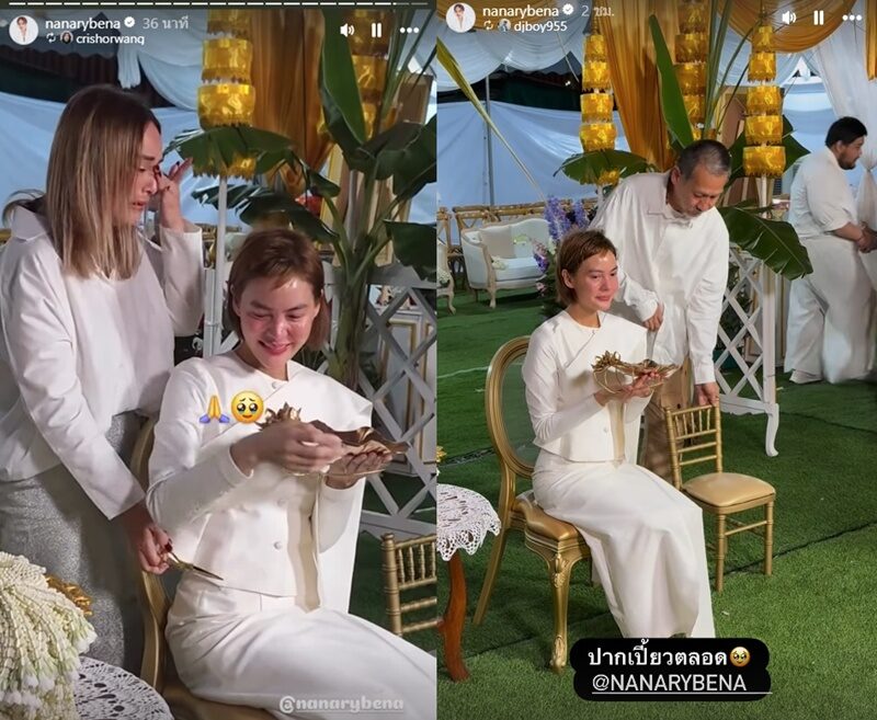 ด้าน นานา ไรบีนา โพสต์คลิปล่าสุดร่วมปลงผมเพื่อนสนิทแบบสุดกลั้นน้ำตา พร้อมทั้งเผยช่วงนาคิณี เจนี่ โปรยทานงานบวช มีน้องโนล่า ลูกสาว และ หลานสาว มารอรับทานด้วย