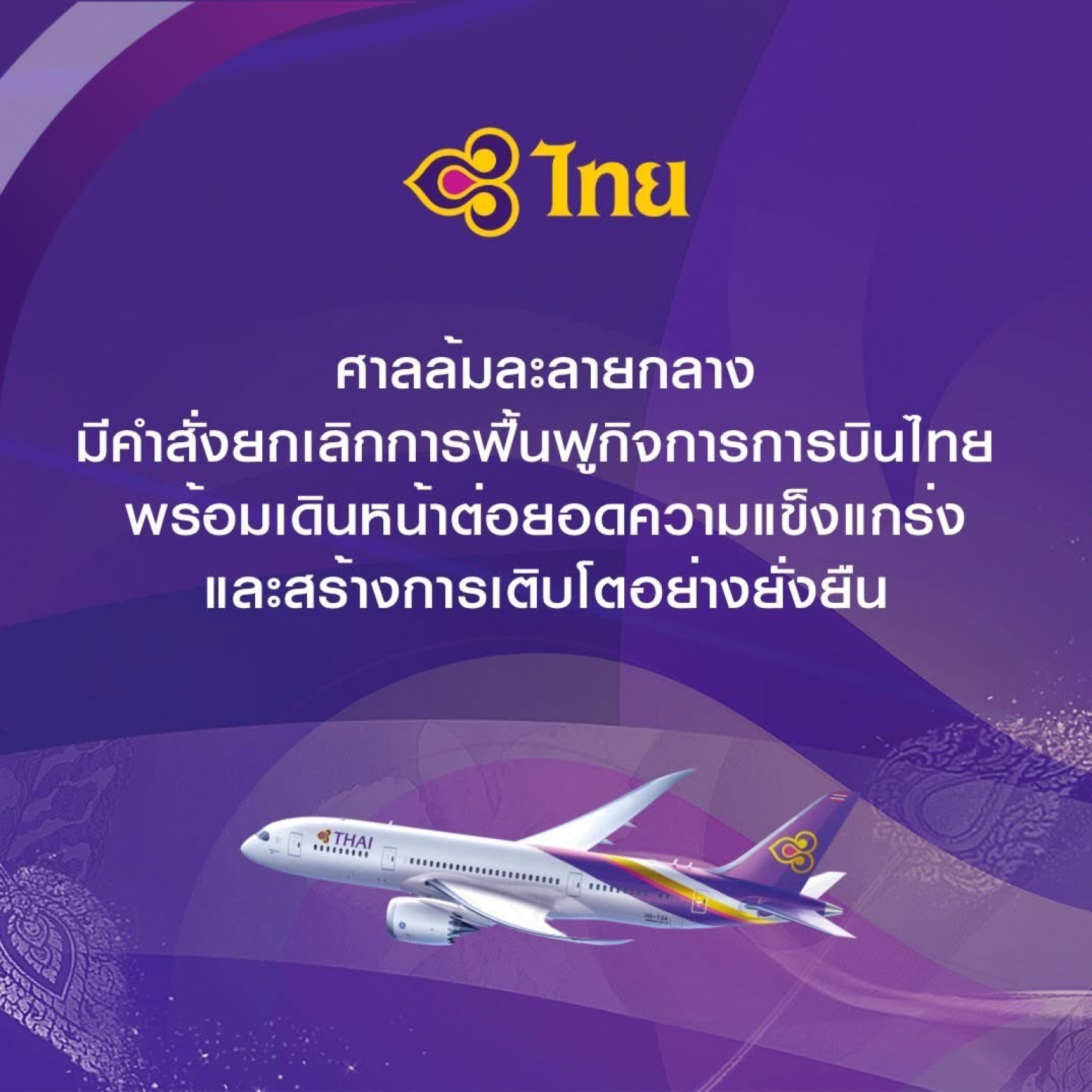 ศาลล้มละลายกลางมีคำสั่งยกเลิกการฟื้นฟูกิจการการบินไทย พร้อมเดินหน้าต่อยอดความแข็งแกร่งและสร้างการเติบโตอย่างยั่งยืน