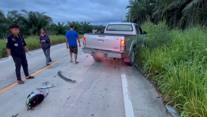 กระบะขับกินเลน พุ่งชนจยย.เต็มแรง หนุ่มร่างกระเด็นเสียชีวิตข้างทาง