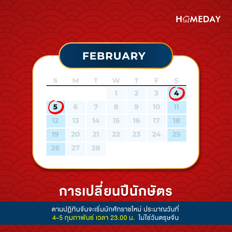 อีกประการหนึ่งที่ต้องทราบคือ การเปลี่ยนปีนักษัตร ตามปฏิทินจีน จะเริ่มนักศักราชใหม่ ประมาณวันที่ 4-5 กุมภาพันธ์ เวลา 23.00 น. ไม่ใช่วันตรุษจีนอย่างที่เข้าใจกันผิด ๆ ฉะนั้นแล้ว หากต้องการตรวจสอบว่าตนเองเกิดปีนักษัตรใด และธาตุอะไร จะต้องตรวจสอบก่อนว่า เกิดก่อนหรือหลังวันที่ 4-5 กุมภาพันธ์ เวลา 23.00 น. (ตรวจสอบได้จากปฏิทิน 100 ปีของจีน) ถ้าเกิดก่อน ยังคงเป็นปีนักษัตรเดิมอยู่ แต่หากเลยแล้ว จึงจะเริ่มนักปีนักษัตรใหม่
