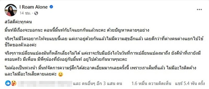 อ่านข่าวต้นฉบับได้ที่ : มิ้นท์ I Roam Alone ประกาศเลิกหนุ่มต่างชาติ ทั้งที่เพิ่งทำเซอร์ไพรส์สามี เผยเหตุไม่อยากให้จบแบบนี้