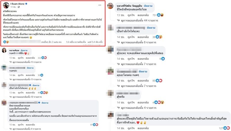 ท่ามกลางกำลังใจจำนวนมากที่คอมเมนต์ส่งเข้ามาให้ มิ้นท์ ทั้งนี้ มิ้นท์ เพิ่งมีโมเมนต์เซอร์ไพรส์เมื่อปลายปี 65 เปิดตัวแฟนต่างชาติ และเพิ่งถูกขอแต่งงานไปเมื่อกลางปี 2566