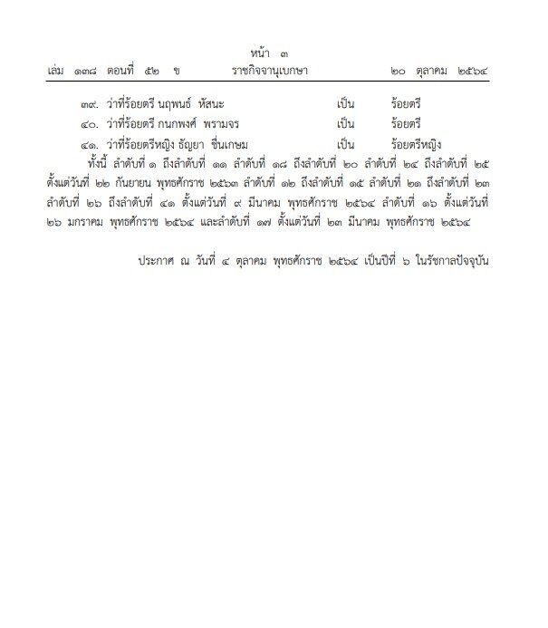 เว็บไซต์ราชกิจจานุเบกษา เผยแพร่ประกาศ พระราชทานยศ พ.ต.หญิง คุณหญิงมนัสสิยา ทิพยวชิราภักดิ์ พ.ต.หญิง คุณหญิงชยุตรา สิริวชิรภักดิ์