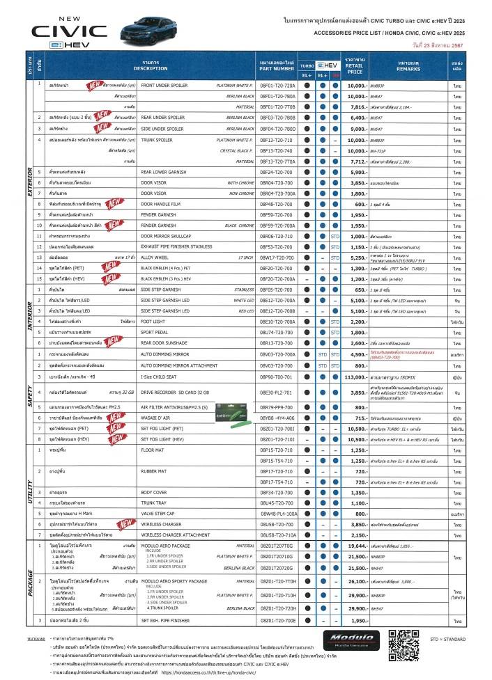 - Modulo Aero Sporty Package ราคา 29,900 บาท ประกอบด้วย สเกิร์ตหน้า สเกิร์ตข้าง สเกิร์ตหลัง และสปอยเลอร์หลังพร้อมไฟเบรก