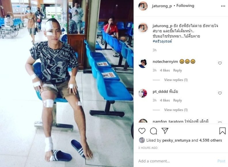 ล่าสุด ลุงรงค์ หรือ จตุรงค์ มกจ๊ก ได้โพสต์ภาพ " น้องพี " ในสภาพหน้าตา เนื้อตัว มีแต่ผ้าพันแผล ลงในอินสตาแกรมjaturong_p ระบุว่า ยัง ยังพียังไม่ตาย ยังหายใจสบาย และยิ้มได้เต็มหน้า..ขับมอไซร์ชนหมา…ไอ้คิ้บผาย ทำเอาบรรดาแฟนคลับแห่เข้ามาแสดงความห่วงใยจำนวนมาก