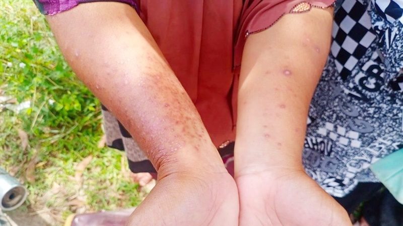 ในเดือนที่ผ่านมา เริ่มมีอุบัติการณ์พบคนไข้มีผื่นคันจำนวนมาก มีตุ่มแดงคันนูนอย่างน่ากลัว คันมากตามแขนขา พบว่ามีผู้ป่วยกระจายในพื้นที่ 7 ตำบล คนไข้ทั้งหมดมีอาการผื่นคันหลังการดำนา โดยส่วนใหญ่คนไข้เริ่มคันหลังดำนาได้ 1-3 วัน ผื่นมีลักษณะจำเพาะ คือเป็นผื่นที่ขาทั้ง 2 ข้างและแขนข้างที่ถนัดที่ใช้ปักดำกล้าเท่านั้น แขนอีกข้างที่ใช้วางต้นกล้าบนแขนซึ่งไม่ได้สัมผัสน้ำจะไม่มีผื่น ไม่มีผื่นบริเวณร่มผ้าหรือบริเวณอื่นที่ไม่สัมผัสน้ำ พบผู้ป่วยที่มาตรวจรักษามากถึง 233 ราย และมีผู้ป่วยอีกจำนวนหนึ่งที่เป็นไม่มากและไม่ได้มาตรวจ คนไข้ทุกคนพูดเป็นเสียงเดียวกันว่า ดำนามาทุกปี ไม่เคยเจอแบบนี้ ผมเป็นหมอที่โรงพยาบาลจะนะมากว่า 20 ปีก็ไม่เคยเจอเช่นกัน