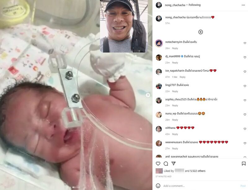 โหน่ง ชะชะช่า โพสต์ภาพทารกแรกคลอด พร้อมแคปชั่นว่า น้องบะหมี่มาแว้วววววว ท่ามกลางคนบันเทิงเข้ามาร่วมยินดีกันรัวๆ