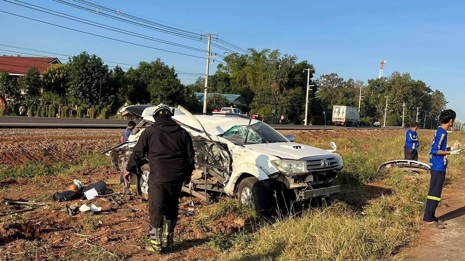 อ่านข่าวต้นฉบับได้ที่ : รถบรรทุกน้ำมัน หลับใน พุ่งชนเสาไฟ ข้ามเลนพุ่งชน ฟอร์จูนเนอร์ กำลังไปรับปริญญา เสียชีวิต 4 ราย