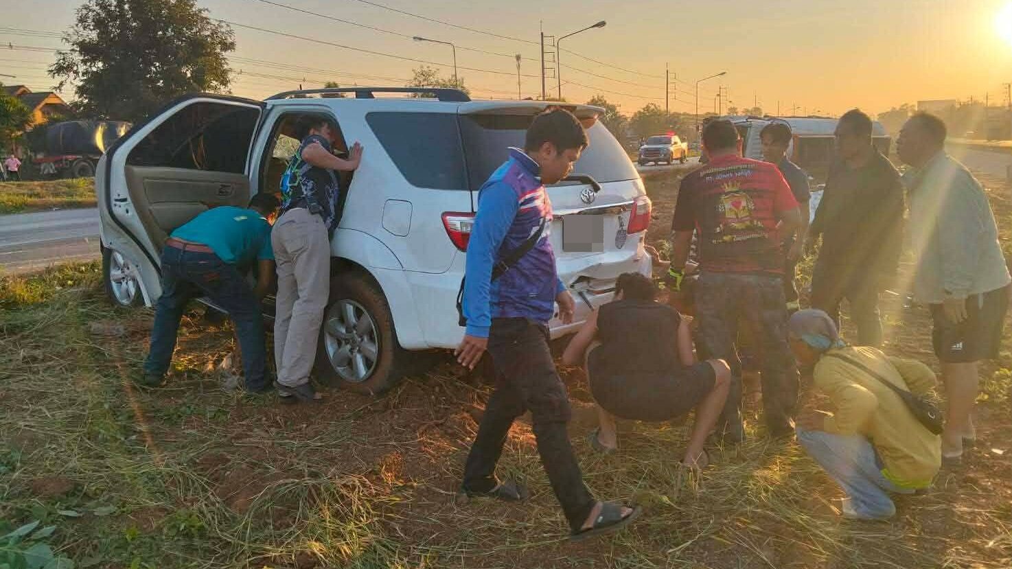 รถบรรทุกน้ำมัน หลับใน พุ่งชนเสาไฟ ข้ามเลนพุ่งชน ฟอร์จูนเนอร์ กำลังไปรับปริญญา เสียชีวิต 4 ราย