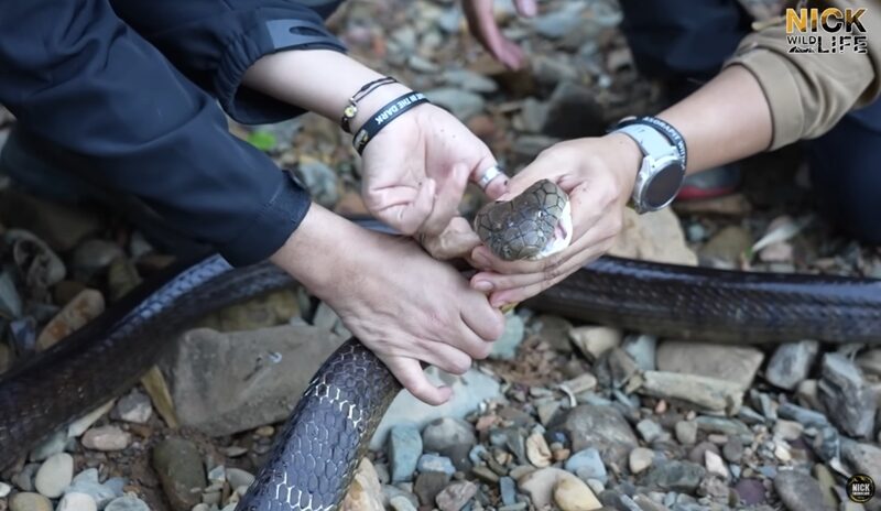 "ระหว่างนี้ก็พบงูเห่าพ่นพิษสยามสีน้ำตาล ที่เป็นอันตราย งูเห่าพ่นพิษสยามสีน้ำตาลได้พ่นพิษใส่ทีมงาน โดยเล็งไปที่ดวงตา แต่โชคดีว่าทีมงานคนดังกล่าวใส่แว่นตา แต่พิษก็ทะลุแว่นตาเข้าไปในตา แต่ไม่มากนัก สามารถใช้น้ำสะอาดล้างออกได้ทันเวลา" นิคกล่าว