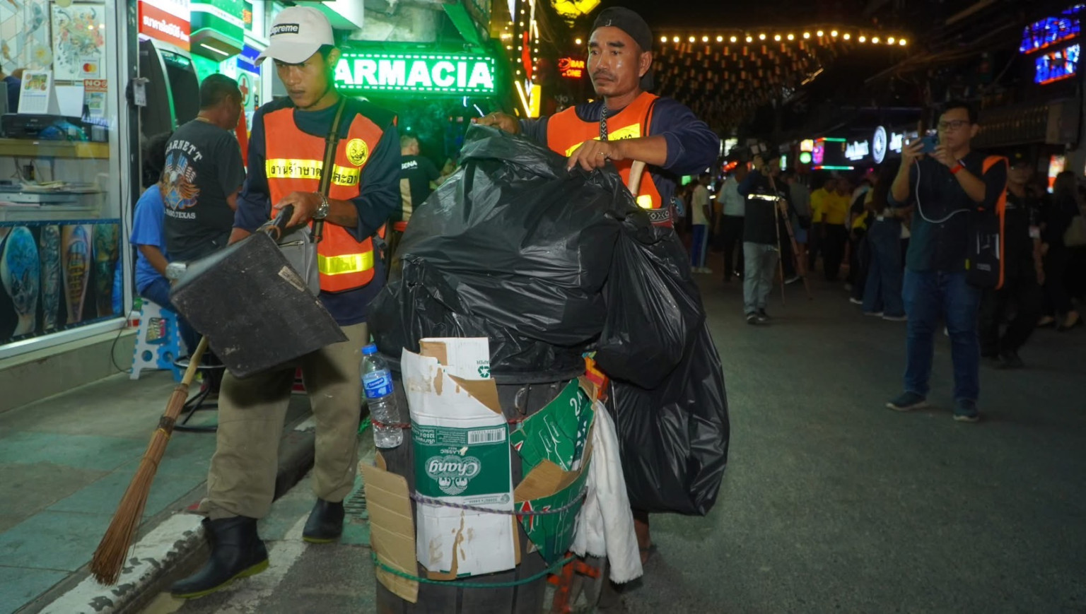 วันที่ 16 มิ.ย.68 เวลา 19.30 น. ณ บริเวณซอยบางลา ตำบลป่าตอง อำเภอกะทู้ จังหวัดภูเก็ต นางลลิตา มณีศรี นายกเทศมนตรีเมืองป่าตอง พร้อมด้วยคณะผู้บริหาร สมาชิกสภาเทศบาลเมืองป่าตอง และเจ้าหน้าที่เทศกิจ ลงพื้นที่ติดตามการดำเนินงานภายใต้ โครงการ “บางลาสะอาด 24 ชั่วโมง (Version 2.0)” โดยมีนายเฉลิมพงศ์ แสงดี สมาชิกสภาผู้แทนราษฎรจังหวัดภูเก็ต เขต 2 ร่วมลงพื้นที่ พร้อมด้วยตัวแทนมูลนิธิพัฒนาป่าตอง ชมรมผู้ประกอบการสถานบันเทิงหาดป่าตอง และสื่อมวลชนในพื้นที่