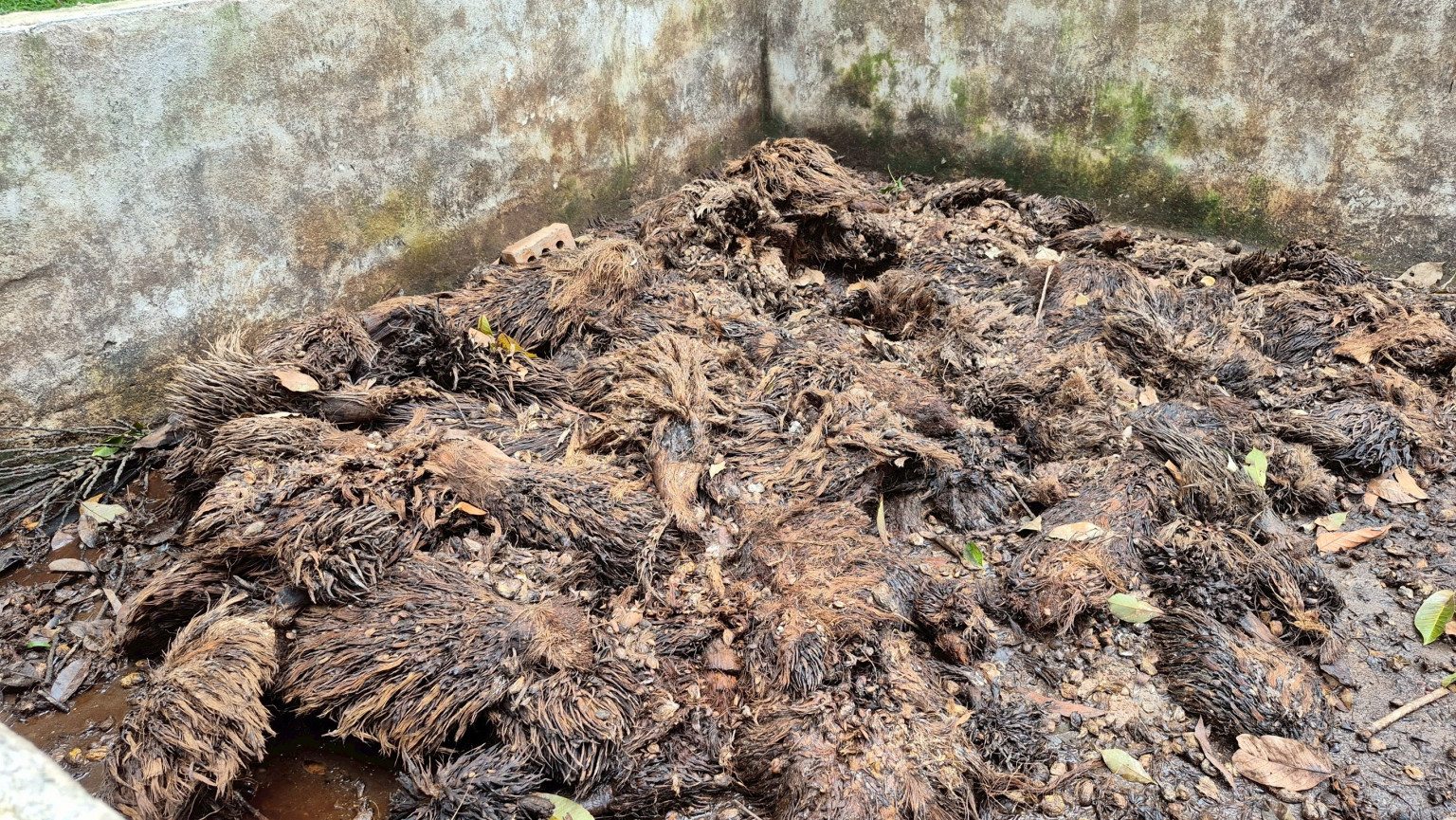 เคล็ดลับอยู่ที่ “ทลายปาล์ม” เศษเหลือจากโรงงานสกัดน้ำมันปาล์มที่คนทั่วไปมองข้าม แต่สำหรับสุริยา นี่คือขุมทรัพย์ทางการเกษตร เขานำทลายปาล์มผ่านกระบวนการหมักด้วย EM และปูนขาว จนเกิดความร้อน-กลิ่นหอม พร้อมเป็นวัสดุเพาะเห็ดคุณภาพดี แล้วจึงนำเข้าฟาร์มระบบปิด ควบคุมอุณหภูมิและความชื้นอย่างมีประสิทธิภาพ