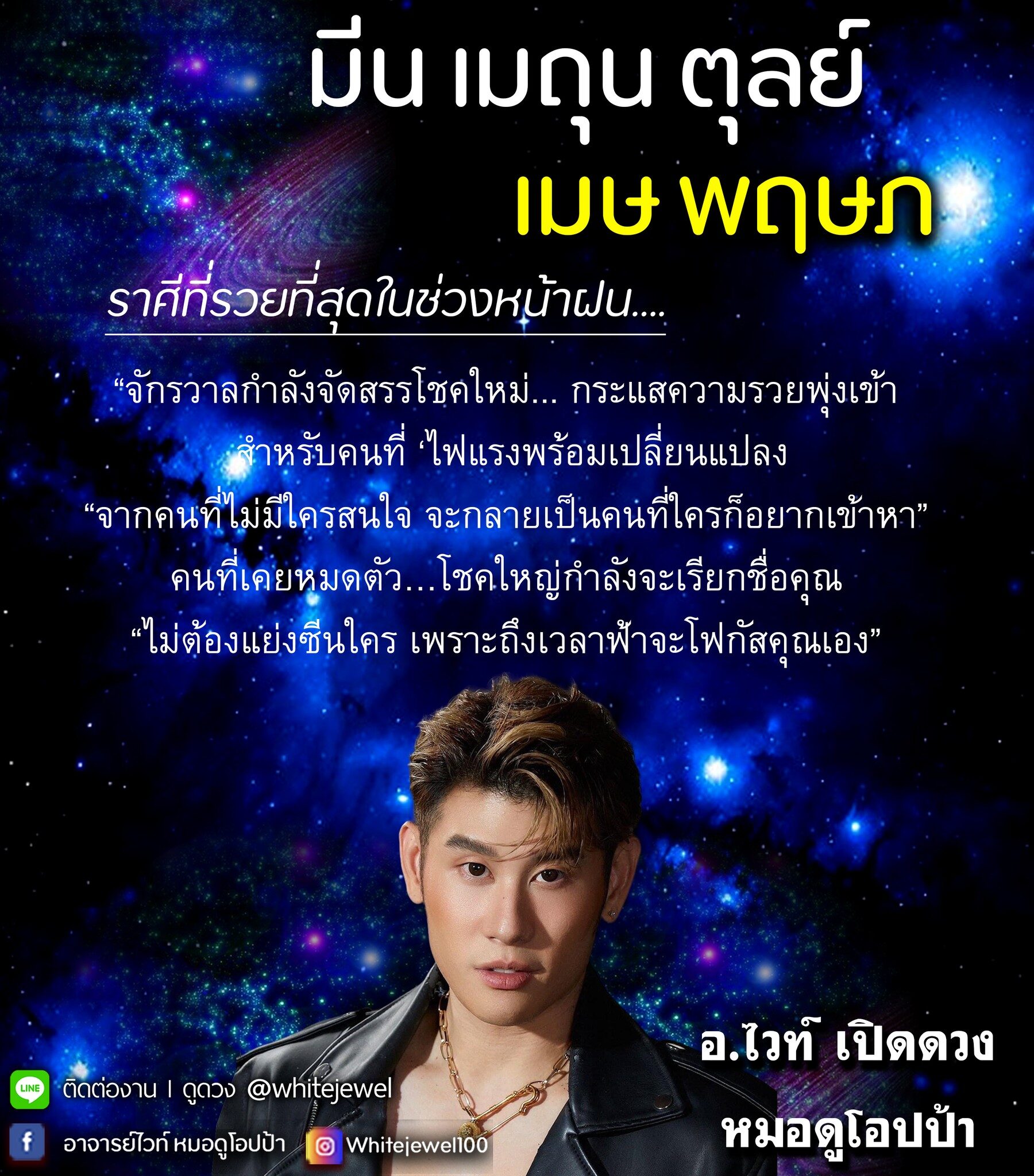 สำหรับราศี ประกอบด้วย มีน เมถุน ตุลย์ เมษ พฤษภ ดวงชะตาราศีที่รวยสุดในช่วงหน้าฝน จักรวาลกำลังจัดสรรโชคใหม่ กระแสความรวยพุ่งเข้า สำหรับคนที่ไฟแรงพร้อมเปลี่ยนแปลง
