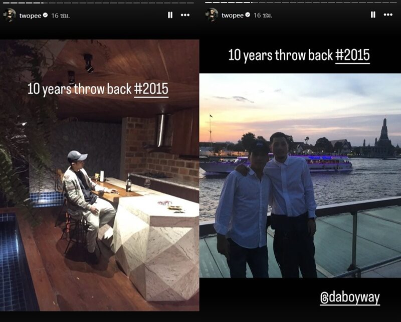 หลังจากนักร้องดังโต้ง ทูพี โพสต์ภาพรัวๆ ย้อนอดีต10 ปี ของตัวเองทั้งตอนไปเล่นคอนเสิร์ตและกับคนสนิทในวงการ พร้อมแคปชั่นว่า “10 years throw back. 2015 around this time of the year, Woww”