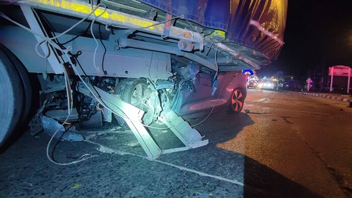 สยอง หนุ่มขับวอลโว่ พุ่งชนอัดท้าย 10 ล้อบรรทุกขวด คอขาด ดับสลด