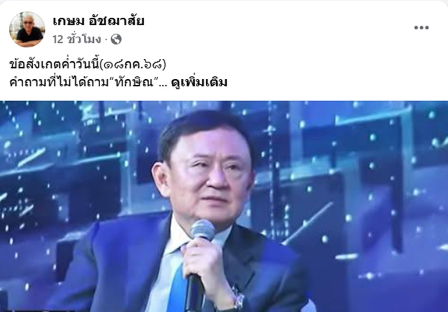 เมื่อวันที่ 19 ก.ค.68 นายเกษม อัชฌาสัย อดีตบรรณาธิการบริหารสยามรัฐ โพสต์ข้อความผ่านเฟซบุ๊ก "เกษม อัชฌาสัย" ระบุว่า