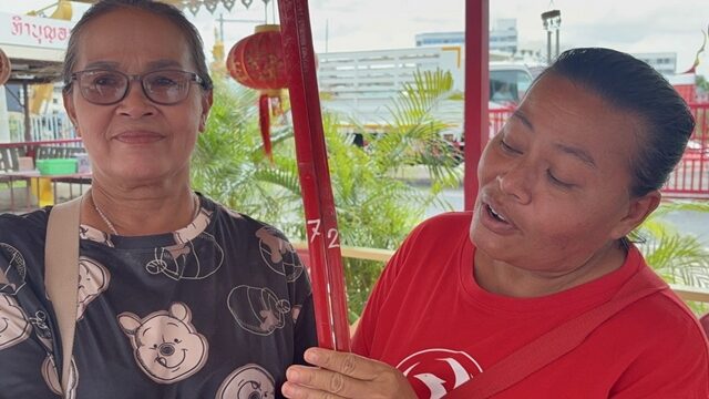 งวดที่แล้วได้โชครางวัลใหญ่ 2 ใบ แม่ค้าทอดมัน นำดอกไม้ถวาย ท้าวเวสสุวรรณ วัดสนามชัย เขย่าเซียมซีได้เลขเด็ดอีก 2 ตัว ด้าน สาวอ่างทอง ล้วงไหได้อีก 3 ตัว