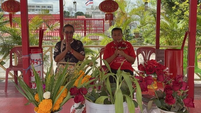 โดยนำดอกกุหลาบแดง ดอกไม้ ธูปเทียน มากราบไหว้ขอพร จุดธูป ล้วงไห เสี่ยงทาย เสี่ยงเซียมซียักษ์ และจุดประทัดเสี่ยงโชคกันต่อไป