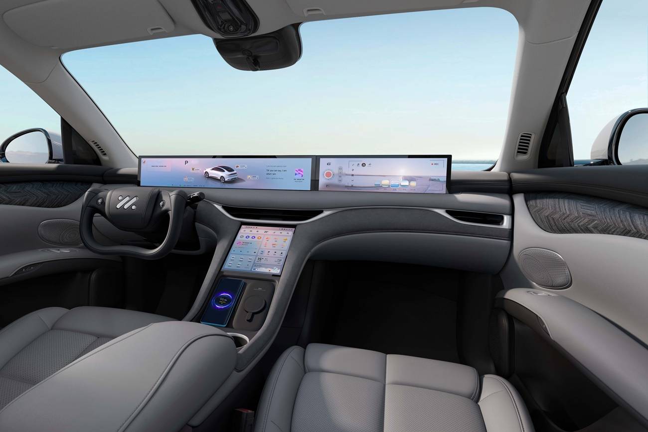 ภายในเรียบง่ายมีจอลอยตัวขนาดใหญ่ครอบคลุมทั้งแผงในชุดคอนโซลหน้าแบบ Full Frame ตั้งแต่ มาตรวัดความเร็วและแสดงข้อมูลตัวรถ Dalian LCD 26.3 นิ้ว จอสัมผัสฝั่งผู้โดยสาร 10.5 นิ้วและจอสัมผัสแนวตั้ง 15.5 นิ้ว พร้อมระบบปฏิบัติการ IM OS 2.0