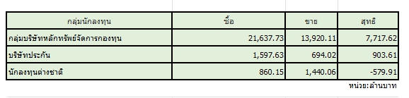 อัพเดต 17 เม.ย. เวลา 10.42 น. • เผยแพร่ 17 เม.ย. เวลา 10.42 น. • ข่าวหุ้นธุรกิจออนไลน์สมาคมตลาดตราสารหนี้ไทย (ThaiBMA) สรุปภาวะตลาดตราสารหนี้ไทยประจำวันนี้ มีมูลค่าการซื้อขายรวมทั้งวันอยู่ที่ 55,798 ล้านบาท ด้านประเภทของนักลงทุน ที่มีมูลค่าการซื้อขายสูงที่สุด 2 อันดับแรก คือ 1. กลุ่มบริษัทหลักทรัพย์จัดการกองทุน (บลจ.) ซื้อสุทธิ 7,718 ล้านบาท 2. กลุ่มบริษัทประกัน ซื้อสุทธิ 904 ล้านบาท ในขณะที่นักลงทุนต่างชาติ ขายสุทธิ 580 ล้านบาท