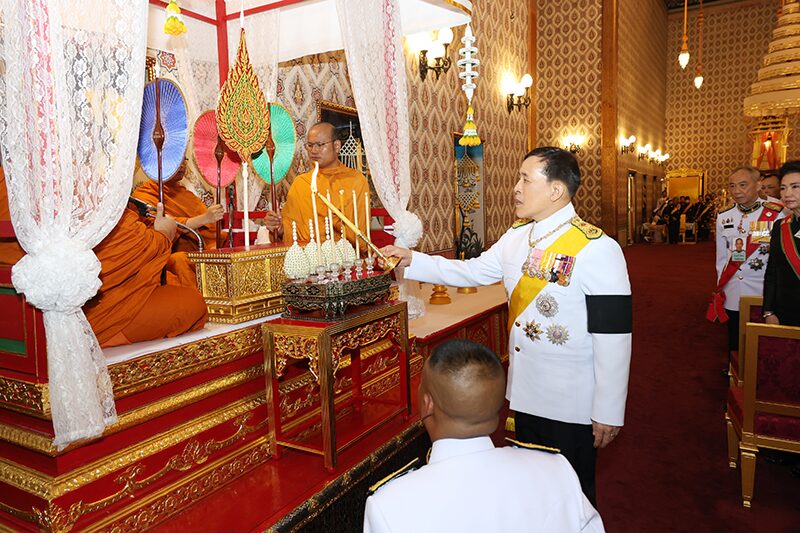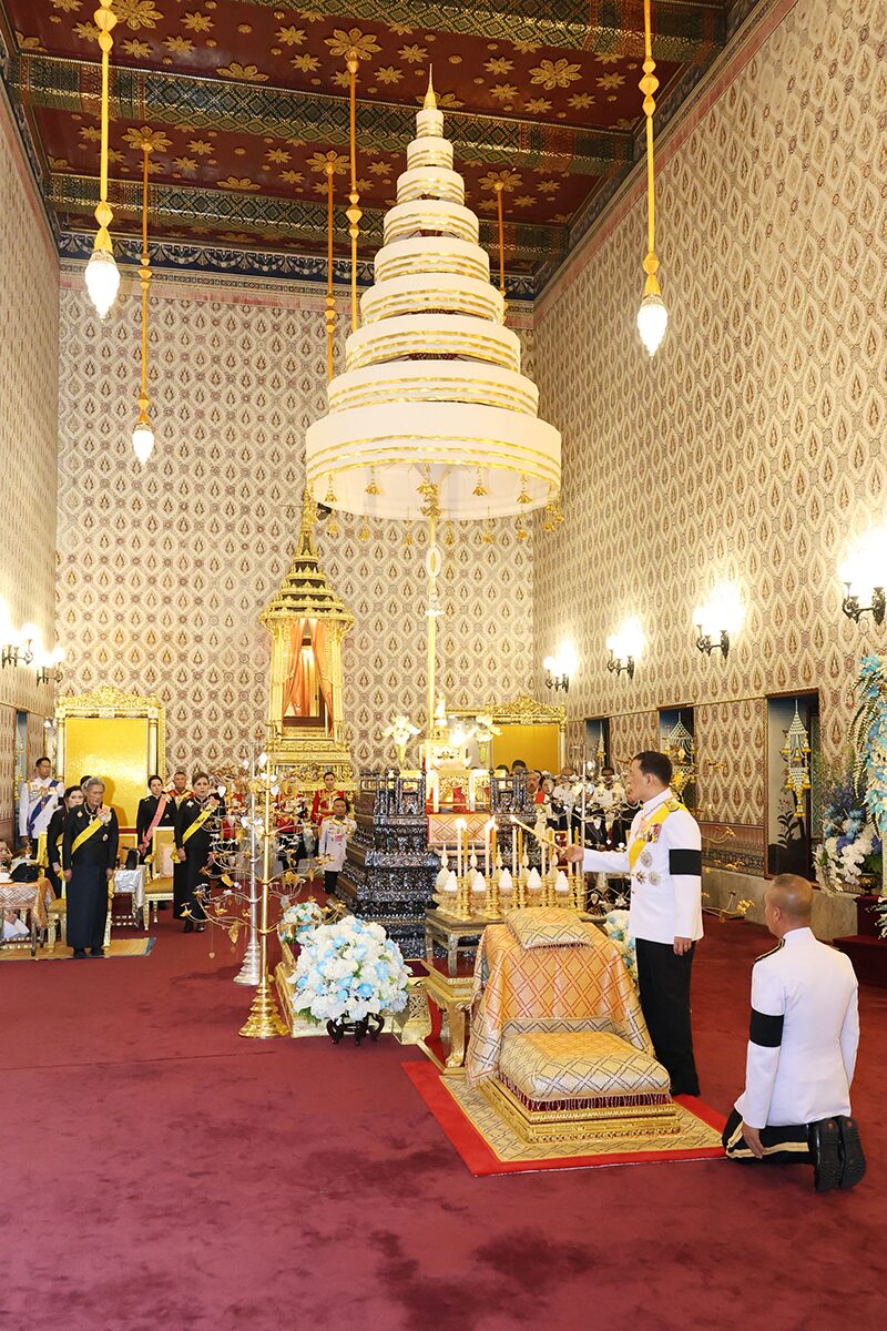 จากนั้น พระบาทสมเด็จพระเจ้าอยู่หัว ทรงจุดธูปเทียนเครื่องราชสักการะทองลงยาราชาวดี และทรงจุดธูปเทียนเครื่องทองน้อย สมเด็จพระนางเจ้า ฯ พระบรมราชินี ทรงจุดธูปเทียนเครื่องราชสักการะทองลงยารอง และทรงจุดธูปเทียนเครื่องทองน้อย