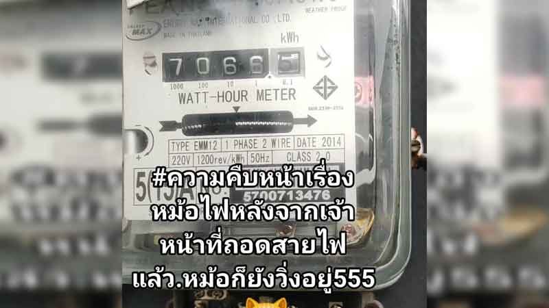 จากกรณีที่มีผู้ใช้เฟซบุ๊กรายหนึ่ง โพสต์เรื่องบิลค่าไฟที่แพงขึ้น เมื่อสอบถามเจ้าหน้าที่การไฟฟ้าบอกเป็นเพราะอากาศร้อน ค่าไฟเลยเพิ่ม แต่เมื่อไปตรวจสอบหม้อแปลงไฟฟ้ากลับพบความผิดปกติ มิเตอร์ไฟหมุนเร็วทั้งที่เครื่องใช้ไฟฟ้าใช้เท่าเดิม เมื่อสับคัตเอาต์ และชักสายที่หม้อแปลงแต่มิเตอร์ยังหมุนอยู่ ตามที่เสนอข่าวไปแล้วนั้น
