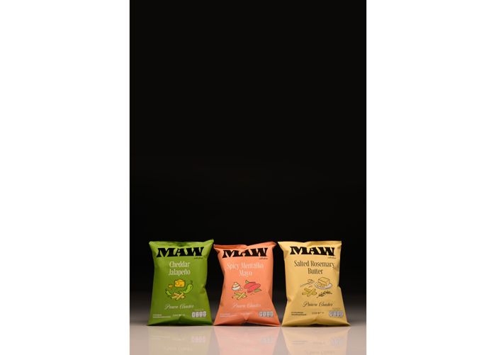 จากความมุ่งมั่นในการสร้างมาตรฐานใหม่ให้กับตลาดขนมในไทย MAW (มาว) เลือกเปิดตัวโปรดักต์แรกด้วยข้าวเกรียบกุ้งพรีเมียม (Premium Prawn Cracker) ซึ่งพัฒนาขึ้นจากอินไซต์ของผู้บริโภครุ่นใหม่ ตั้งแต่การคัดเลือกวัตถุดิบเกรดสูงเพื่อลดกลิ่นคาวกุ้งแบบเดิมๆ การออกแบบรูปทรงให้ดูทันสมัยคล้าย French Fries Cut ไปจนถึงการคิดค้นรสชาติที่ได้แรงบันดาลใจจาก Global Taste และนำมาปรับให้เข้ากับรสนิยมของคนไทย