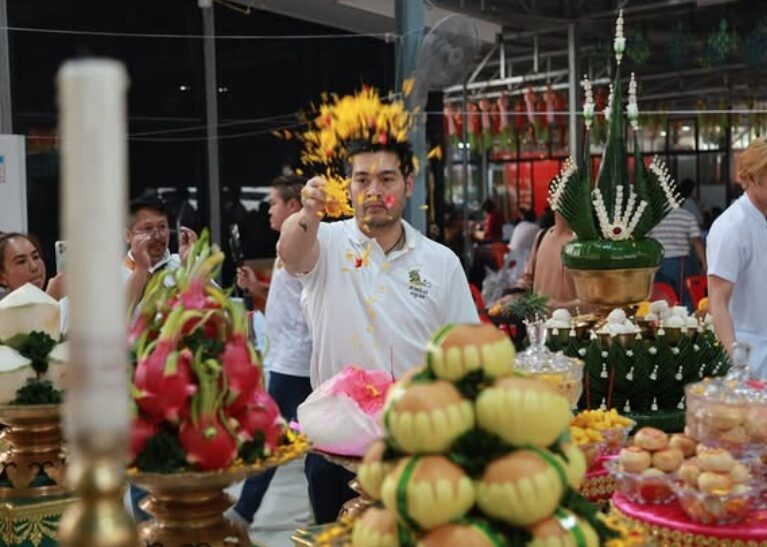 พร้อมทั้งยังเผยภาพ พิธีบวงสรวงและพลีมวลสารมงคล วัดสวนธรรมปีติ กาฬสินธุ์ โดยหลวงปู่ศิลา ก่อนจะโพสต์อีกภาพเปลวไฟร้อนแรงอยู่ข้างหน้า ขณะยืนไหว้ในระหว่างพิธี พร้อมเลขขันน้ำมนต์ภายในงานด้วย แจกโชคงวดนี้